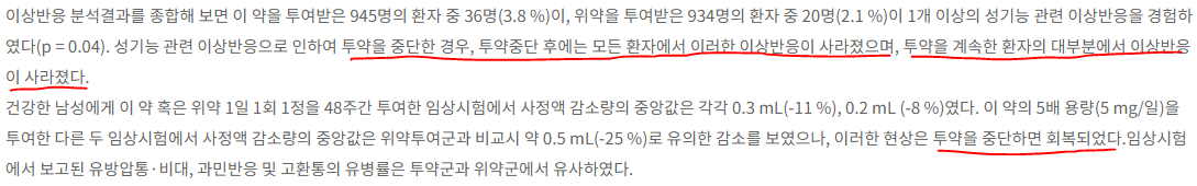 그 약 먹고 성 기능 저하되는 분 못 봤어요.